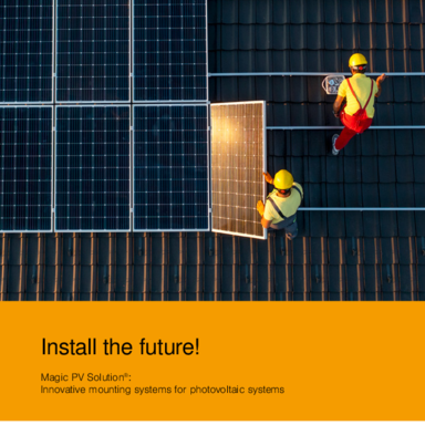 Die Magic PV Solution® für Flachdachanlagen verfügt genau wie das System für Schrägdachanlagen über die Magic-Technologie für eine schrauben- und werkzeuglose Montage sowie die Universalklemme zur unkomplizierten Fixierung aller marktüblichen PV-Module. Zusätzlich sorgt das Ballastsystem UniBase für die variable Beschwerung des Gesamtsystems mithilfe rechteckiger Pflastersteine – und das auch jederzeit nach der Installation. Das Uni-Base-System kann nach Belieben mit weiteren Produkten kombiniert werden, beispielsweise mit dem Adapter für Gitterrinnen Typ 165 MBG HGRM.