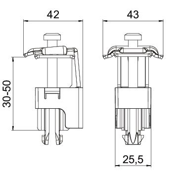 Coloris acier inoxydable Dimension 41x42x79 Empreinte CO2 (GWP) du berceau à la porte 0,6786 kg CO2e / 1 Pièce Hauteur 79 mm Largeur 43 mm Matériau Acier inoxydable Modèle de l’élément de fixation et de connexion photovoltaïque Borne universelle Pour hauteur du cadre max. 50 mm Pour hauteur du cadre min. 30 mm Profondeur 42 mm Réglable oui Surface nu With module earthing non - Tous les types