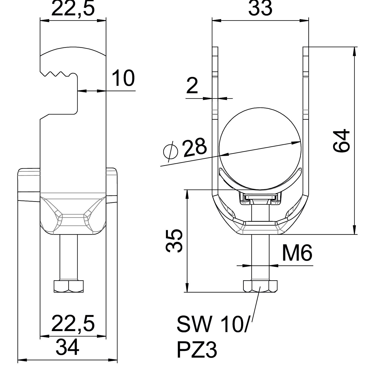 Avec carter en plastique oui Cote A 22,5 mm Cote B 33 mm Cote c 34 mm Cote L 35 mm Cote t 2 mm Dimension 22-28mm Dimension G (mm) M6 Dimension H 64 mm Empreinte CO2 (GWP) du berceau à la porte 0,4117 kg CO2e / 1 Pièce Épaisseur de tôle 2 mm Filetage M6 Hauteur 64 mm Largeur 33 mm Longueur 22,5 mm Longueur dimensions extérieures 34 mm Matériau acier inoxydable 1.4301 max. Couple de serrage 3 Nm Nombre de câbles/tubes 1 Ouverture 10 mm Plage de serrage D max. 28 mm Plage de serrage D min. 22 mm pour diamètre de tube max. 28 mm pour diamètre de tube min. 22 mm Sans halogène oui Supplément matériau Acier inoxydable Supplément surface non traité Surface nu, traité Type de montage Profilé plat - Tous les types