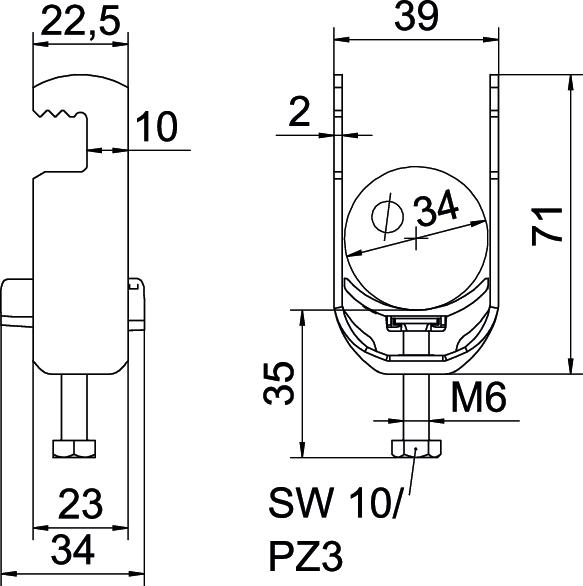 Avec carter en plastique oui Avec contre-plaque non Cote A 22,5 mm Cote B 39 mm Cote c 34 mm Cote L 35 mm Cote t 2 mm Dimension 28-34mm Dimension G (mm) M6 Dimension H 71 mm Empreinte CO2 (GWP) du berceau à la porte 0,1575 kg CO2e / 1 Pièce Épaisseur de tôle 2 mm Filetage M6 Hauteur 71 mm Largeur 39 mm Longueur 22,5 mm Longueur dimensions extérieures 34 mm Matériau acier Matériau de la plaque Plastique max. Couple de serrage 3 Nm Nombre de câbles/tubes 1 Ouverture 10 mm Plage de serrage D max. 34 mm Plage de serrage D min. 28 mm pour diamètre de tube max. 34 mm pour diamètre de tube min. 28 mm Qualité du matériau de la plaque Polypropylène Sans halogène oui Supplément matériau acier Supplément surface galvanisé à chaud Surface galvanisé à chaud par trempage Type de montage Profilé plat - Tous les types