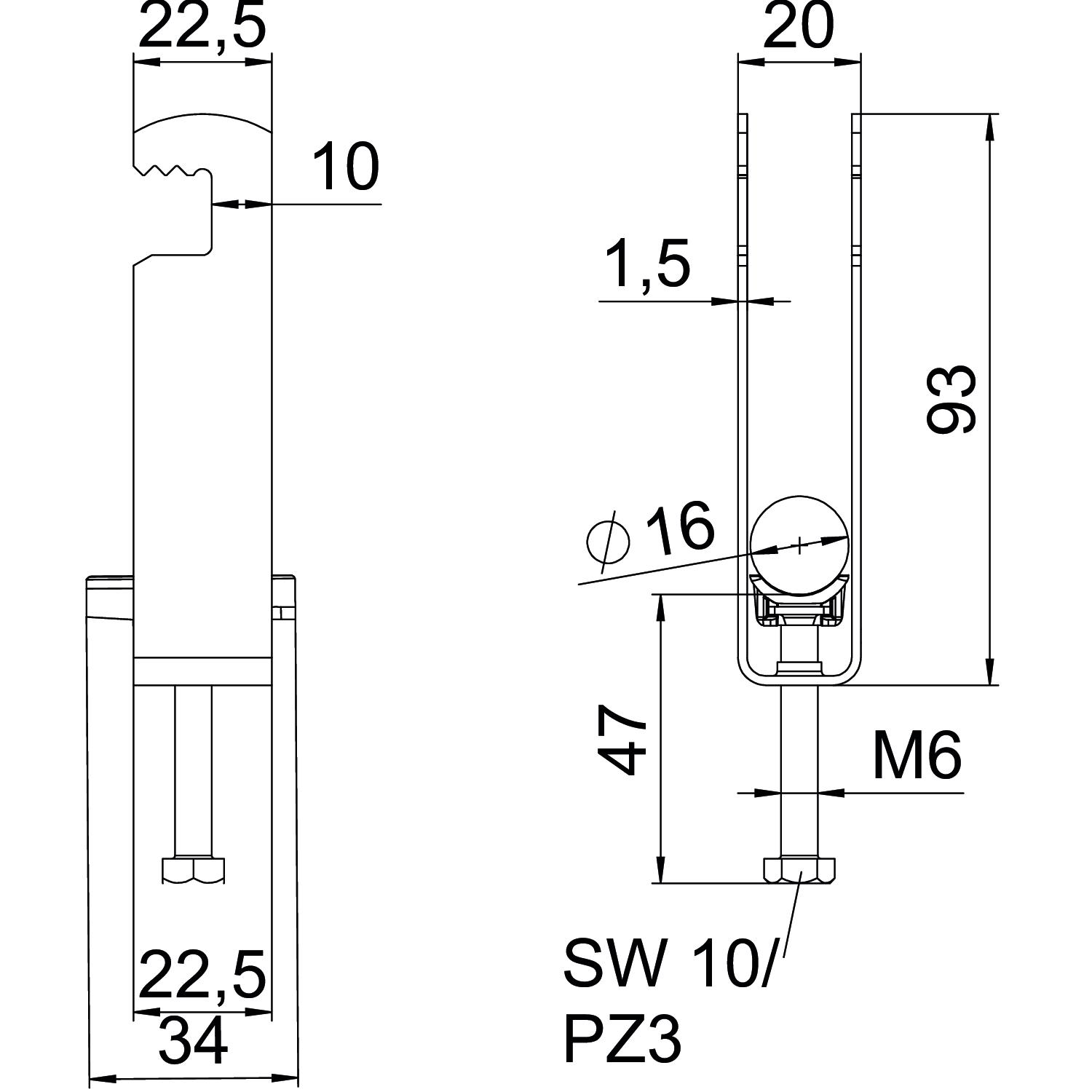 Avec carter en plastique oui Cote A 22,5 mm Cote B 20 mm Cote c 34 mm Cote L 47 mm Cote t 1,5 mm Dimension 12-16mm Dimension G (mm) M6 Dimension H 93 mm Empreinte CO2 (GWP) du berceau à la porte 0,1819 kg CO2e / 1 Pièce Épaisseur de tôle 1,5 mm Filetage M6 Hauteur 93 mm Largeur 20 mm Longueur 22,5 mm Longueur dimensions extérieures 34 mm Matériau acier max. Couple de serrage 3 Nm Nombre de câbles/tubes 3 Ouverture 10 mm Plage de serrage D max. 16 mm Plage de serrage D min. 12 mm pour diamètre de tube max. 16 mm pour diamètre de tube min. 12 mm Sans halogène oui Supplément matériau acier Supplément surface galvanisé à chaud Surface galvanisé à chaud par trempage Type de montage Profilé plat - Tous les types