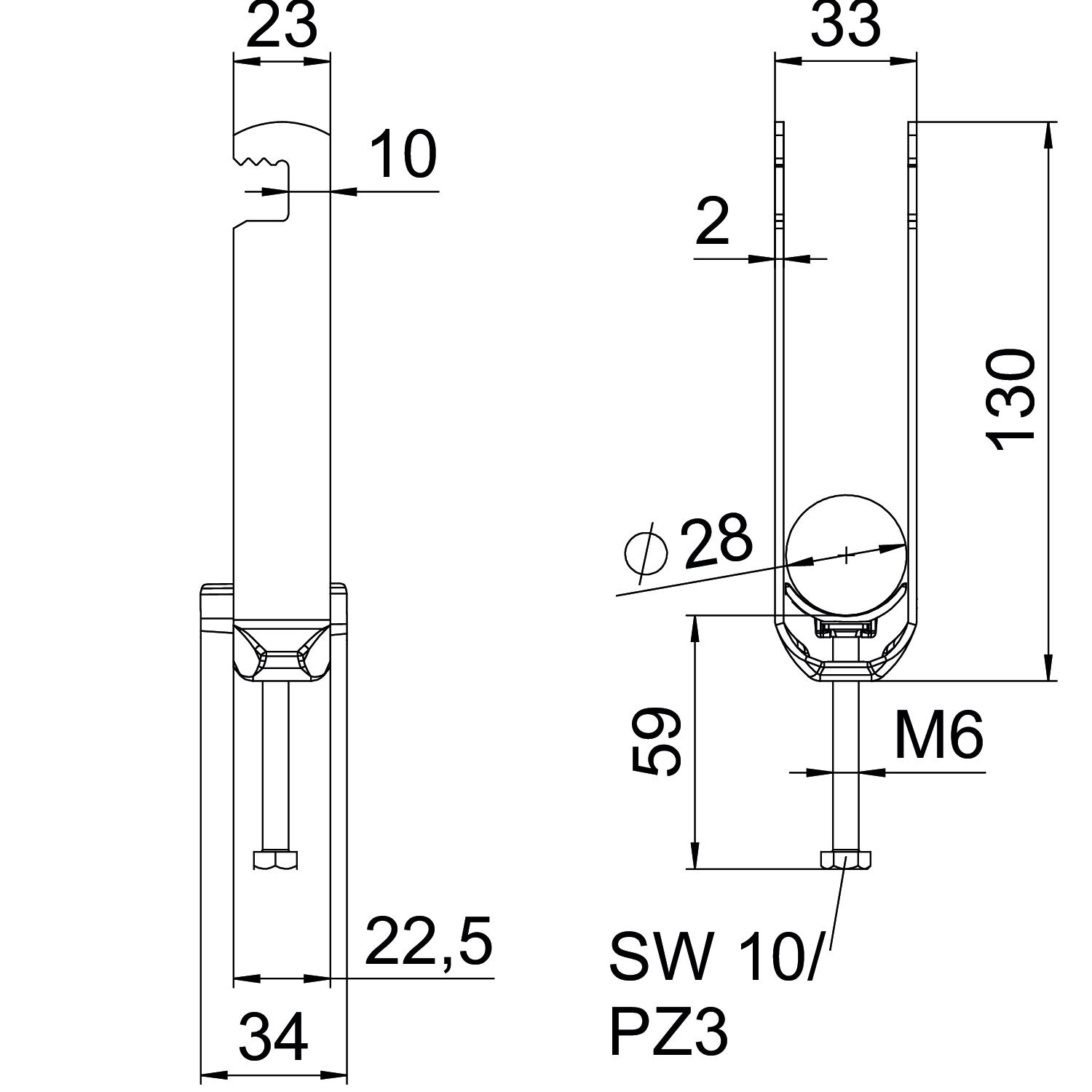 Avec carter en plastique oui Cote A 22,5 mm Cote B 33 mm Cote c 34 mm Cote L 59 mm Cote t 2 mm Dimension 22-28mm Dimension G (mm) M6 Dimension H 130 mm Empreinte CO2 (GWP) du berceau à la porte 0,2974 kg CO2e / 1 Pièce Épaisseur de tôle 2 mm Filetage M6 Hauteur 130 mm Largeur 33 mm Longueur 22,5 mm Matériau acier max. Couple de serrage 3 Nm Nombre de câbles/tubes 3 Ouverture 10 mm Plage de serrage D max. 28 mm Plage de serrage D min. 22 mm pour diamètre de tube max. 28 mm pour diamètre de tube min. 22 mm Sans halogène oui Supplément matériau acier Supplément surface galvanisé à chaud Surface galvanisé à chaud par trempage Type de montage Profilé plat - Tous les types