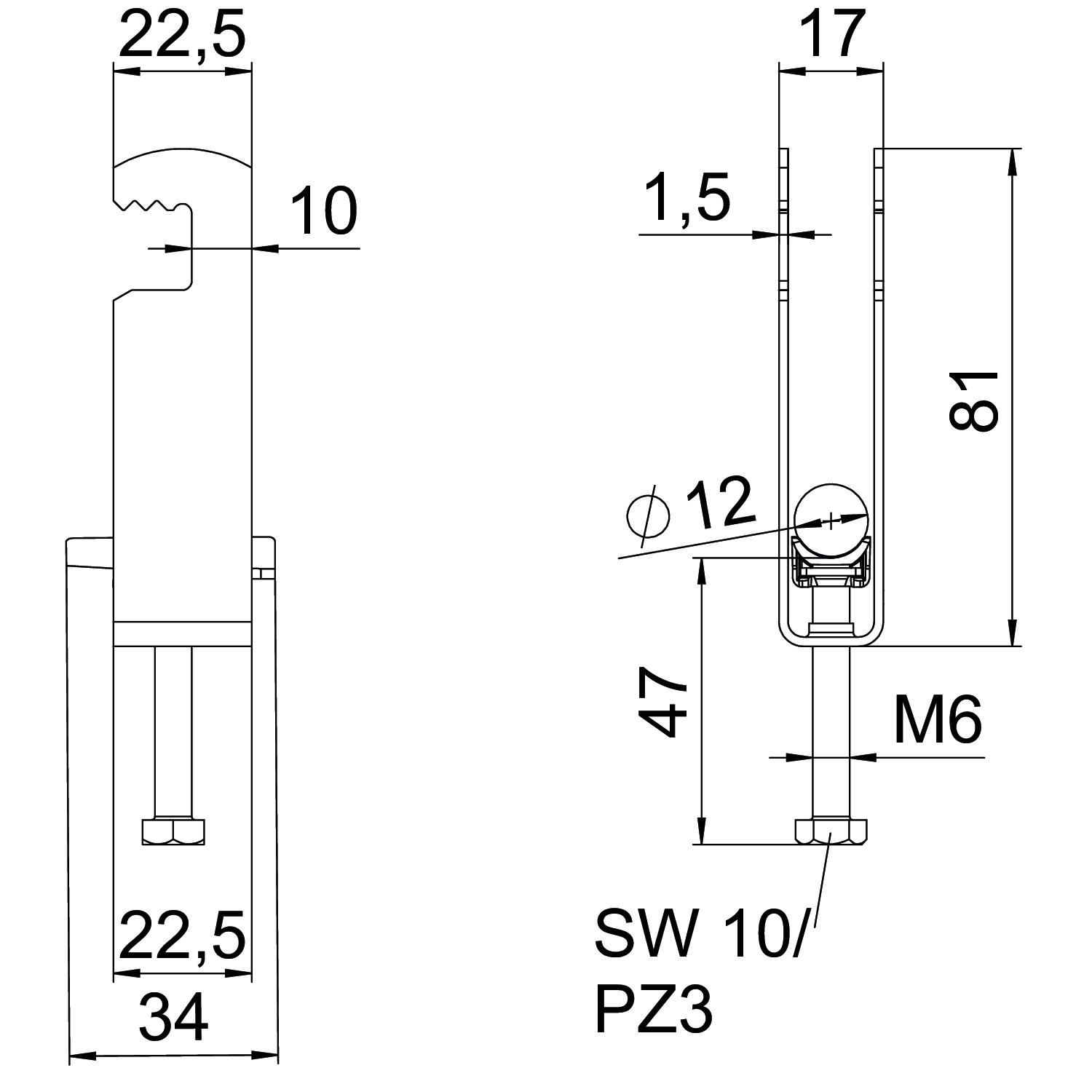 Avec carter en plastique oui Cote A 22,5 mm Cote B 17 mm Cote c 34 mm Cote L 47 mm Cote t 1,5 mm Dimension 8-12mm Dimension G (mm) M6 Dimension H 81 mm Empreinte CO2 (GWP) du berceau à la porte 0,1666 kg CO2e / 1 Pièce Épaisseur de tôle 1,5 mm Filetage M6 Hauteur 81 mm Largeur 17 mm Longueur 22,5 mm Longueur dimensions extérieures 34 mm Matériau acier max. Couple de serrage 3 Nm Nombre de câbles/tubes 3 Ouverture 10 mm Plage de serrage D max. 12 mm Plage de serrage D min. 8 mm pour diamètre de tube max. 12 mm pour diamètre de tube min. 8 mm Sans halogène oui Supplément matériau acier Supplément surface galvanisé à chaud Surface galvanisé à chaud par trempage Type de montage Profilé plat - Tous les types