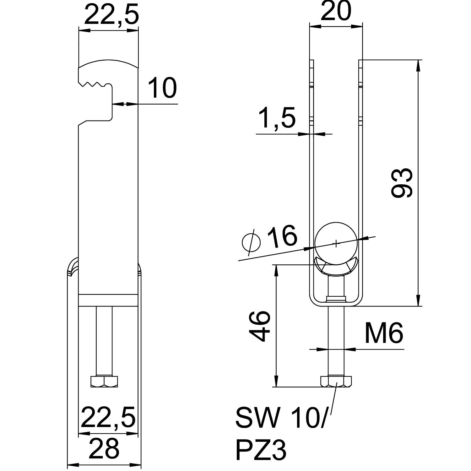 Avec carter métallique oui Cote A 22,5 mm Cote B 20 mm Cote c 28 mm Cote L 46 mm Cote t 1,5 mm Dimension 12-16mm Dimension G (mm) M6 Dimension H 93 mm Empreinte CO2 (GWP) du berceau à la porte 0,1905 kg CO2e / 1 Pièce Épaisseur de tôle 1,5 mm Filetage M6 Hauteur 93 mm Largeur 20 mm Longueur 22,5 mm Longueur dimensions extérieures 28 mm Matériau acier max. Couple de serrage 3 Nm Nombre de câbles/tubes 3 Ouverture 10 mm Plage de serrage D max. 16 mm Plage de serrage D min. 12 mm pour diamètre de tube max. 16 mm pour diamètre de tube min. 12 mm Sans halogène oui Supplément matériau acier Supplément surface galvanisé à chaud Surface galvanisé à chaud par trempage Type de montage Profilé plat - Tous les types