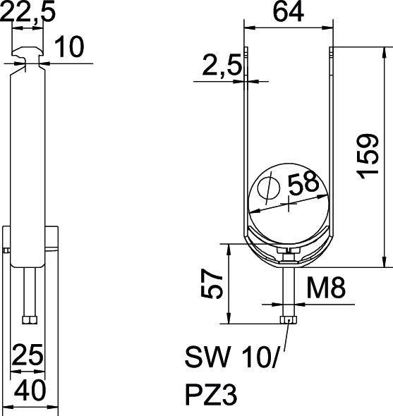 Avec carter en plastique oui Avec contre-plaque non Cote A 25 mm Cote B 64 mm Cote c 40 mm Cote L 58 mm Cote t 2,5 mm Dimension 52-58mm Dimension G (mm) M8 Dimension H 159 mm Empreinte CO2 (GWP) du berceau à la porte 1,0011 kg CO2e / 1 Pièce Épaisseur de tôle 2,5 mm Filetage M8 Hauteur 159 mm Largeur 64 mm Longueur 25 mm Longueur dimensions extérieures 40 mm Matériau acier inoxydable 1.4301 Matériau de la plaque Plastique max. Couple de serrage 5 Nm Nombre de câbles/tubes 2 Ouverture 10 mm Plage de serrage D max. 58 mm Plage de serrage D min. 52 mm pour diamètre de tube max. 58 mm pour diamètre de tube min. 52 mm Pour rail avec largeur de fente (avec intervalle) max. 17 mm Pour rail avec largeur de fente (avec intervalle) min. 16 mm Qualité du matériau de la plaque Polypropylène Sans halogène oui Supplément matériau Acier inoxydable Supplément surface non traité Surface nu, traité Type de montage Rail profilé - Tous les types