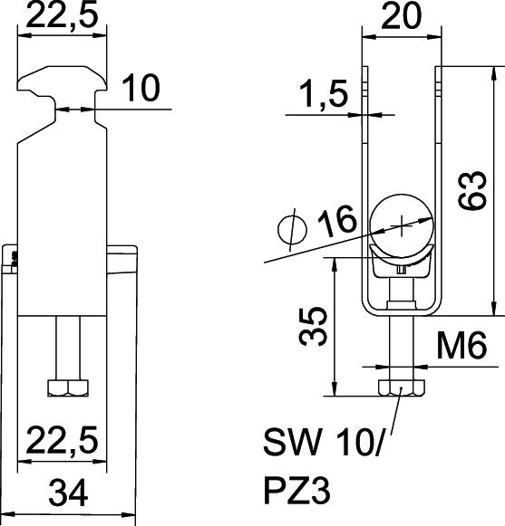 Description du produitBride de fixation avec pied tête de marteau, plaque de pression en matière plastique en polypropylène. Pour montage vertical et horizontal de 2 câbles individuels sur des rails profilés en C. Pour une ouverture de 16 – 17 mm. Avec vis à 1 filet sur plaque de pression, tête de vis hexagonale universelle SW10, avec fente et empreinte cruciforme. Convient au montage en intérieur et en extérieur. Plusieurs câbles doivent être séparés par des plaques doubles. L’utilisation d’une contre-plaque est recommandée.