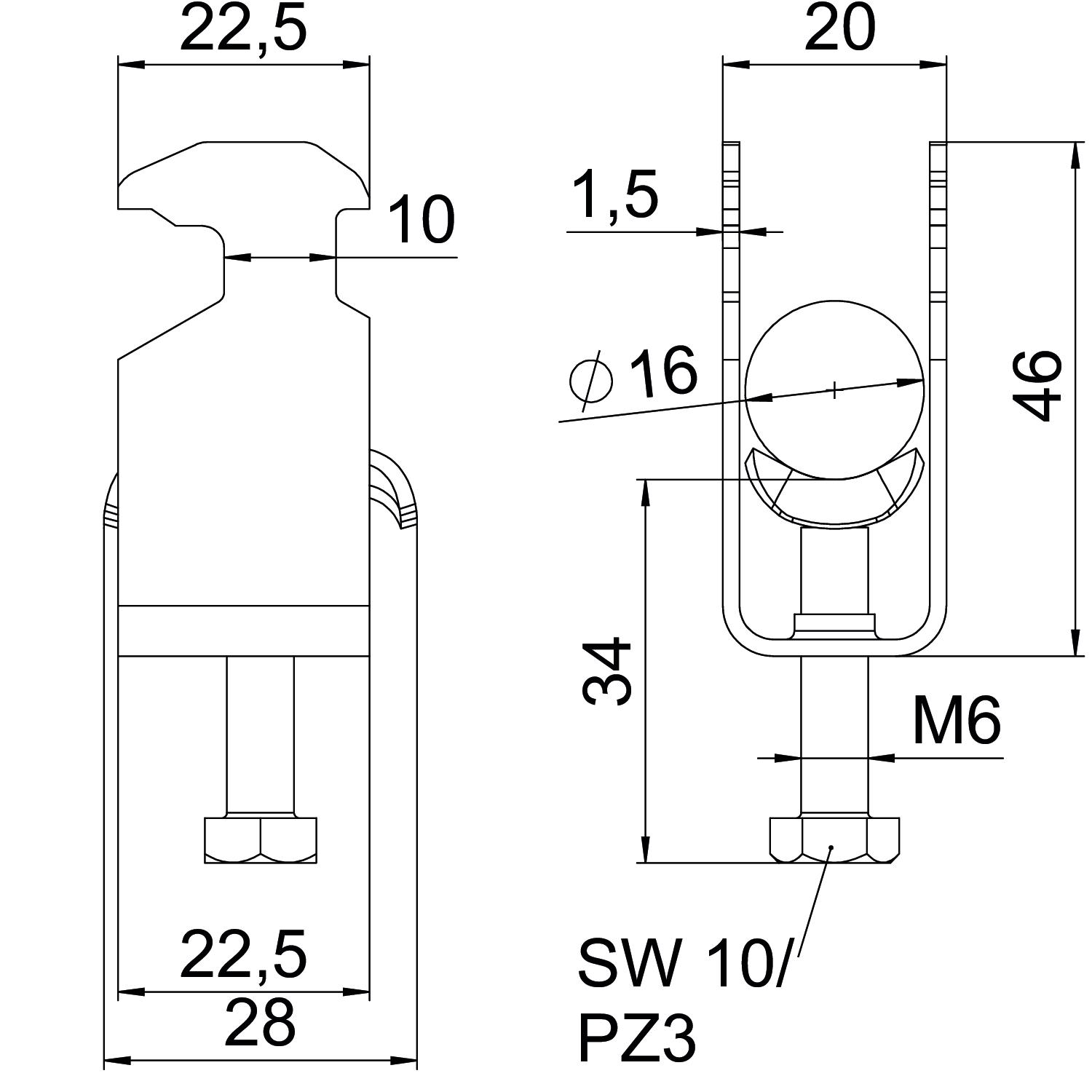 Description du produitBride de fixation avec embase à tête en marteau, plaque de pression en métal avec bords arrondis pour la protection des câbles. Pour montage vertical et horizontal d’1 câble individuel sur des rails profilés en C. Pour une ouverture de 16 – 17 mm. Avec vis à 1 filet sur plaque de pression, tête de vis hexagonale universelle SW10, avec fente et empreinte cruciforme. Convient au montage en intérieur et en extérieur. L’utilisation d’une contre-plaque est recommandée.