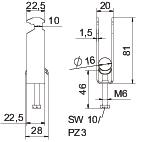 Avec carter en plastique non Avec carter métallique oui Avec contre-plaque non Cote A 22,5 mm Cote B 20 mm Cote c 28 mm Cote L 46 mm Cote t 1,5 mm Dimension 12-16mm Dimension G (mm) M6 Dimension H 81 mm Empreinte CO2 (GWP) du berceau à la porte 0,1388 kg CO2e / 1 Pièce Épaisseur de tôle 1,5 mm Filetage M8 Hauteur 81 mm Largeur 20 mm Longueur 22,5 mm Longueur dimensions extérieures 28 mm Matériau acier Matériau de la plaque acier max. Couple de serrage 3 Nm Nombre de câbles/tubes 3 Ouverture 10 mm Plage de serrage D max. 16 mm Plage de serrage D min. 12 mm pour diamètre de tube max. 16 mm pour diamètre de tube min. 12 mm Pour rail avec largeur de fente (avec intervalle) max. 17 mm Pour rail avec largeur de fente (avec intervalle) min. 16 mm Sans halogène oui Sécurité de fonctionnement oui Supplément matériau acier Supplément surface galvanisé à chaud Surface galvanisé à chaud par trempage Type de montage Rail profilé - Tous les types