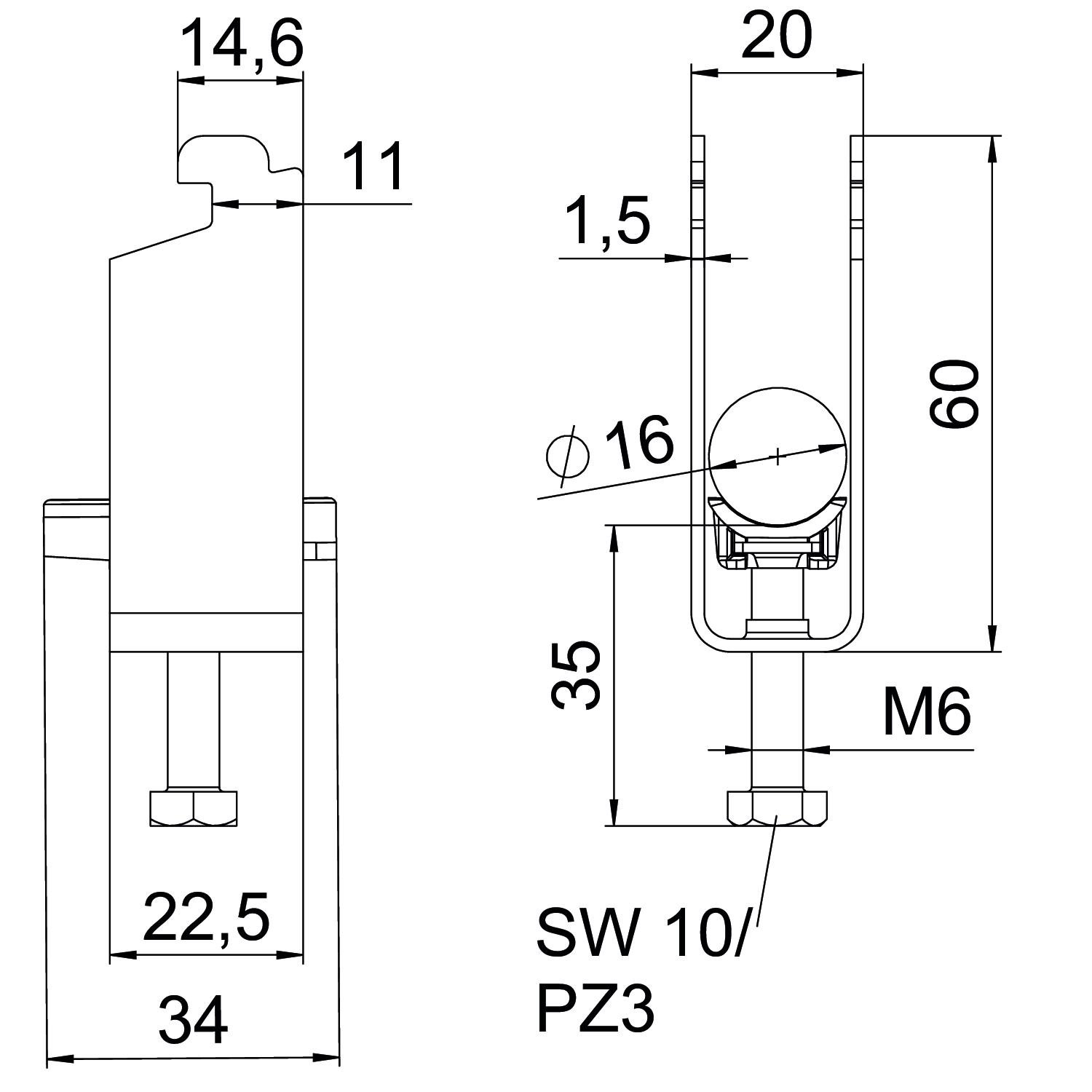 Avec carter en plastique oui Avec carter métallique non Avec contre-plaque non Cote A 22,5 mm Cote B 20 mm Cote c 34 mm Cote L 47 mm Cote t 1,5 mm Dimension 12-16mm Dimension G (mm) M6 Dimension H 60 mm Empreinte CO2 (GWP) du berceau à la porte 0,1189 kg CO2e / 1 Pièce Épaisseur de tôle 1,5 mm Filetage M6 Hauteur 60 mm Largeur 20 mm Longueur 22,5 mm Longueur dimensions extérieures 34 mm Matériau acier Matériau de la plaque Plastique max. Couple de serrage 3 Nm Nombre de câbles/tubes 2 Ouverture 10 mm Plage de serrage D max. 16 mm Plage de serrage D min. 12 mm pour diamètre de tube max. 16 mm pour diamètre de tube min. 12 mm Pour rail avec largeur de fente (avec intervalle) max. 12 mm Pour rail avec largeur de fente (avec intervalle) min. 11 mm Qualité du matériau de la plaque Polypropylène Sans halogène oui Supplément matériau acier Supplément surface galvanisé à chaud Surface galvanisé à chaud par trempage Type de montage Rail profilé - Tous les types