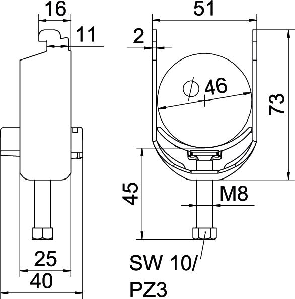 Avec carter en plastique oui Avec contre-plaque non Cote A 25 mm Cote B 51 mm Cote c 40 mm Cote L 45 mm Cote t 2 mm Dimension 40-46mm Dimension G (mm) M8 Dimension H 73 mm Empreinte CO2 (GWP) du berceau à la porte 0,5121 kg CO2e / 1 Pièce Épaisseur de tôle 2 mm Filetage M8 Hauteur 73 mm Largeur 51 mm Longueur 25 mm Longueur dimensions extérieures 40 mm Matériau acier inoxydable 1.4301 Matériau de la plaque Plastique max. Couple de serrage 5 Nm Nombre de câbles/tubes 1 Ouverture 10 mm Plage de serrage D max. 46 mm Plage de serrage D min. 40 mm Pour rail avec largeur de fente (avec intervalle) max. 12 mm Pour rail avec largeur de fente (avec intervalle) min. 11 mm Qualité du matériau de la plaque Polypropylène Sans halogène oui Supplément matériau Acier inoxydable Supplément surface non traité Surface nu, traité Type de montage Rail profilé - Tous les types