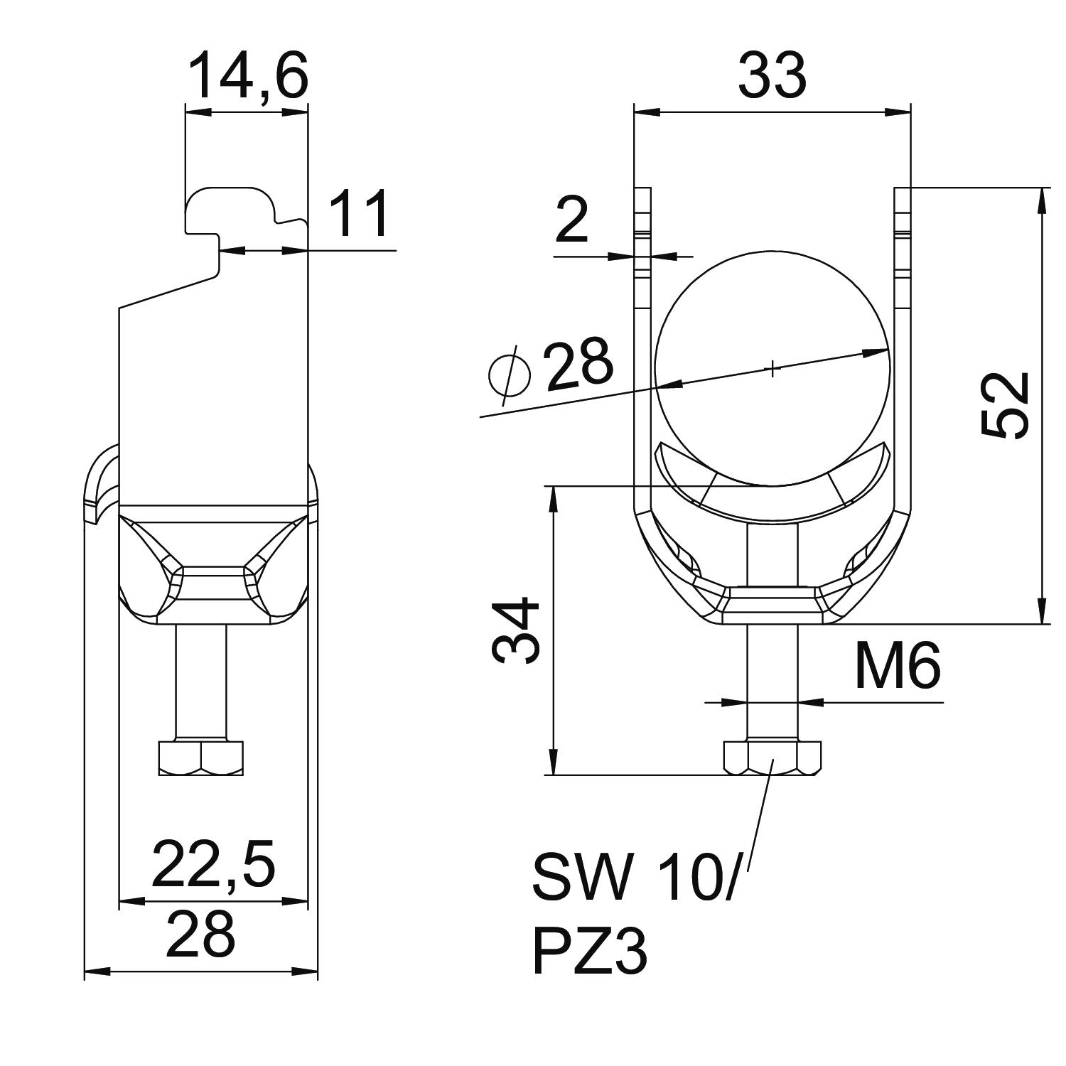 Description du produitBride de fixation avec pied N, plaque de pression en métal avec bords arrondis pour la protection des câbles. Pour montage vertical et horizontal d’1 câble individuel sur des rails profilés en C. Pour une ouverture de 11 – 12 mm. Avec vis à 1 filet sur plaque de pression, tête de vis hexagonale universelle SW10, avec fente et empreinte cruciforme. Convient au montage en intérieur et en extérieur. L’utilisation d’une contre-plaque est recommandée.