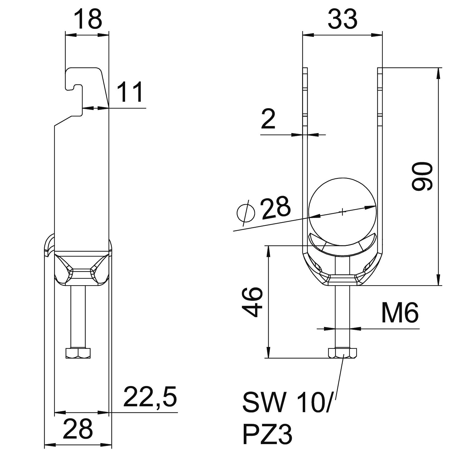 Description du produitBride de fixation avec pied U, plaque de pression en métal avec bords arrondis pour la protection des câbles. Pour montage vertical et horizontal de 2 câbles individuels sur des rails profilés en C. Pour une ouverture de 18 – 22 mm. Avec vis à 1 filet sur plaque de pression, tête de vis hexagonale universelle SW10, avec fente et empreinte cruciforme. Convient au montage en intérieur et en extérieur. Plusieurs câbles doivent être séparés par des plaques doubles. L’utilisation d’une contre-plaque est recommandée.