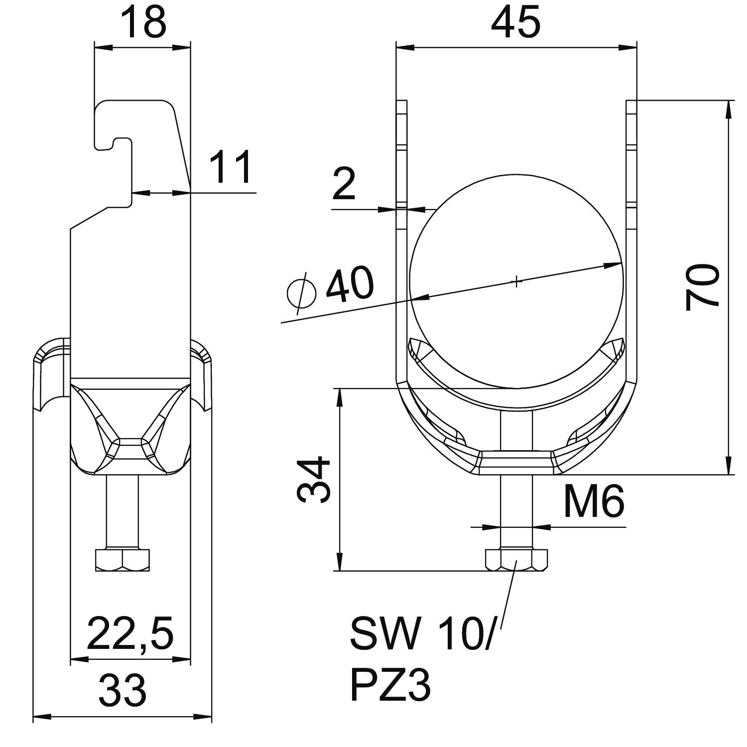 Description du produitBride de fixation avec pied U, plaque de pression en métal avec bords arrondis pour la protection des câbles. Pour montage vertical et horizontal d’1 câble individuel sur des rails profilés en C. Pour une ouverture de 18 – 22 mm. Avec vis à 1 filet sur plaque de pression, tête de vis hexagonale universelle SW10, avec fente et empreinte cruciforme. Convient au montage en intérieur et en extérieur. L’utilisation d’une contre-plaque est recommandée.