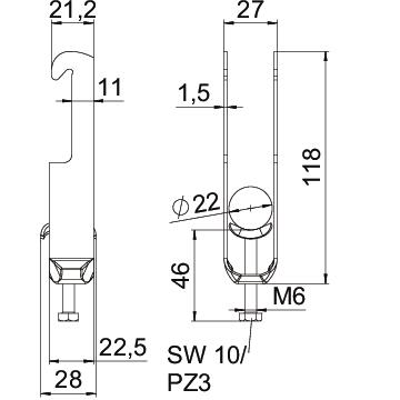 Avec carter métallique oui Cote A 22,5 mm Cote B 27 mm Cote c 28 mm Cote L 46 mm Cote t 1,5 mm Dimension 16-22mm Dimension G (mm) M6 Dimension H 118 mm Empreinte CO2 (GWP) du berceau à la porte 0,2399 kg CO2e / 1 Pièce Épaisseur de tôle 1,5 mm Filetage M6 Hauteur 118 mm Largeur 27 mm Longueur 22,5 mm Longueur dimensions extérieures 28 mm Matériau acier max. Couple de serrage 3 Nm Nombre de câbles/tubes 2 Ouverture 10 mm Plage de serrage D max. 22 mm Plage de serrage D min. 16 mm pour diamètre de tube max. 22 mm pour diamètre de tube min. 16 mm Sans halogène oui Supplément matériau acier Supplément surface galvanisé à chaud Surface galvanisé à chaud par trempage Type de montage Cornière lourde - Tous les types