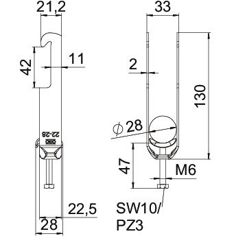 Avec carter métallique oui Cote A 22,5 mm Cote B 33 mm Cote c 28 mm Cote L 46 mm Cote t 2 mm Dimension 22-28mm Dimension G (mm) M6 Dimension H 130 mm Empreinte CO2 (GWP) du berceau à la porte 0,311 kg CO2e / 1 Pièce Épaisseur de tôle 2 mm Filetage M6 Hauteur 130 mm Largeur 33 mm Longueur 22,5 mm Longueur dimensions extérieures 28 mm Matériau acier max. Couple de serrage 3 Nm Nombre de câbles/tubes 2 Ouverture 10 mm Plage de serrage D max. 28 mm Plage de serrage D min. 22 mm pour diamètre de tube max. 28 mm pour diamètre de tube min. 22 mm Sans halogène oui Supplément matériau acier Supplément surface galvanisé à chaud Surface galvanisé à chaud par trempage Type de montage Cornière lourde - Tous les types