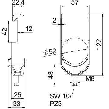 Avec carter métallique oui Cote A 25 mm Cote B 57 mm Cote c 33 mm Cote L 43 mm Cote t 2 mm Dimension 46-52mm Dimension G (mm) M8 Dimension H 122 mm Empreinte CO2 (GWP) du berceau à la porte 0,3171 kg CO2e / 1 Pièce Épaisseur de tôle 2 mm Filetage M8 Hauteur 122 mm Largeur 57 mm Longueur 25 mm Longueur dimensions extérieures 33 mm Matériau acier max. Couple de serrage 5 Nm Nombre de câbles/tubes 1 Ouverture 10 mm Plage de serrage D max. 52 mm Plage de serrage D min. 46 mm pour diamètre de tube max. 52 mm pour diamètre de tube min. 46 mm Sans halogène oui Supplément matériau acier Supplément surface galvanisé à chaud Surface galvanisé à chaud par trempage Type de montage Cornière lourde - Tous les types