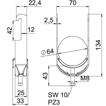 Avec carter métallique oui Cote A 25 mm Cote B 70 mm Cote c 33 mm Cote L 43 mm Cote t 2,5 mm Dimension 58-64mm Dimension G (mm) M8 Dimension H 134 mm Empreinte CO2 (GWP) du berceau à la porte 0,4193 kg CO2e / 1 Pièce Épaisseur de tôle 2,5 mm Filetage M8 Hauteur 134 mm Largeur 70 mm Longueur 25 mm Longueur dimensions extérieures 33 mm Matériau acier max. Couple de serrage 5 Nm Nombre de câbles/tubes 1 Ouverture 10 mm Plage de serrage D max. 64 mm Plage de serrage D min. 58 mm pour diamètre de tube max. 64 mm pour diamètre de tube min. 58 mm Sans halogène oui Supplément matériau acier Supplément surface galvanisé à chaud Surface galvanisé à chaud par trempage Type de montage Cornière lourde - Tous les types