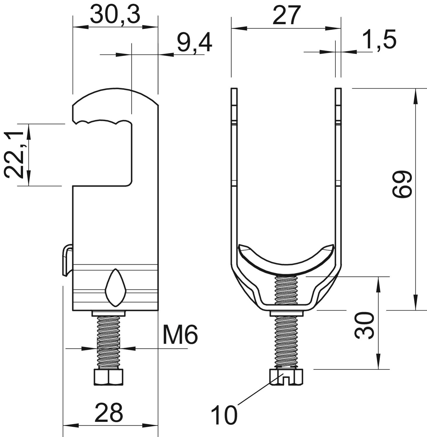 Description du produitConvient pour tous les profilés métalliques ronds ou les tubes d'un diamètre max. de 22 mm. Bride, plaque de pression et vis sont en acier galvanisé à chaud.