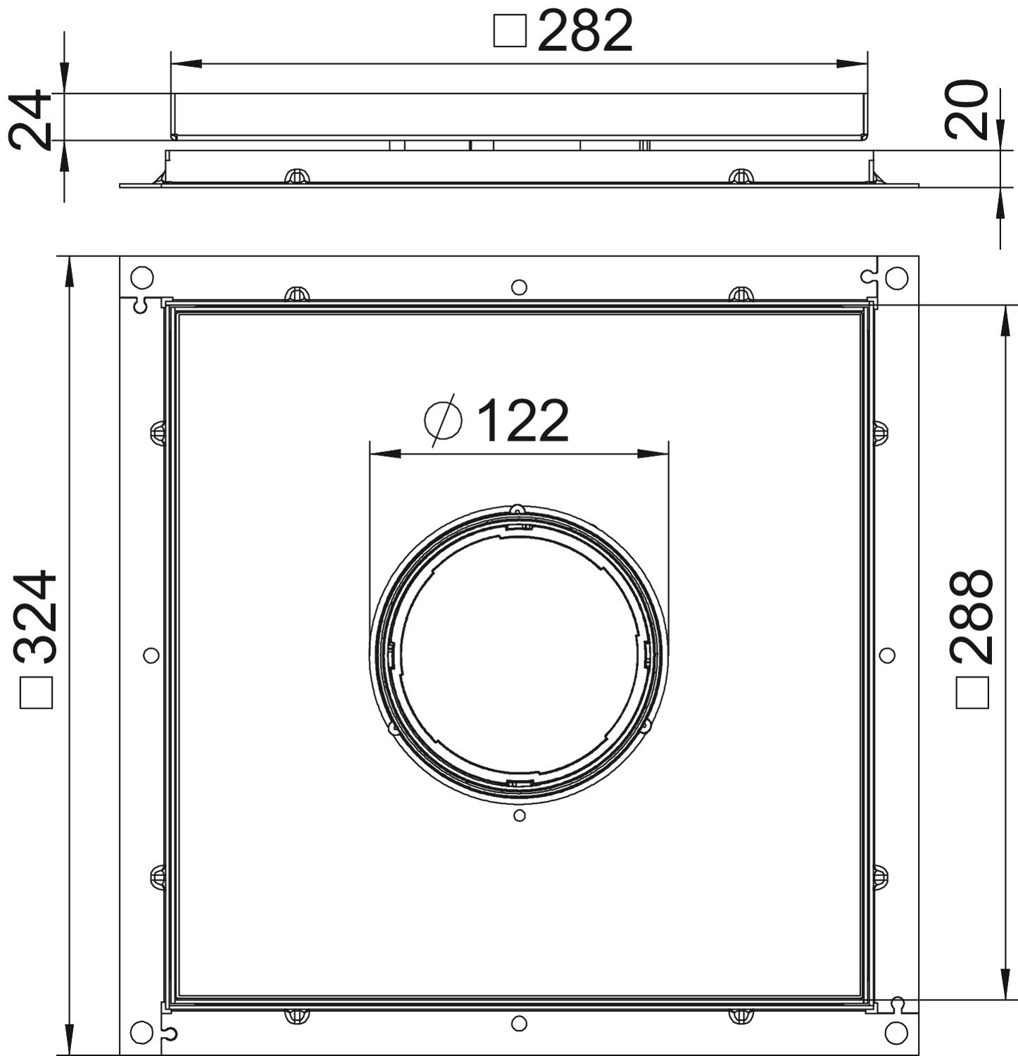 Cote A 324 mm Cote B 288 mm Cote c 282 mm Dimension h 20 mm Dimension 283x283x20 Empreinte CO2 (GWP) du berceau à la porte 19,3264 kg CO2e / 1 Pièce Entretien du sol humide Épaisseur du revêtement de sol 18 mm Matériau acier inoxydable 1.4301 Modèle Sortie de câble Tube escamotable Nombre des sorties de câble 1 Support d'appareillage pour le logement de paniers appareillage non - Tous les types