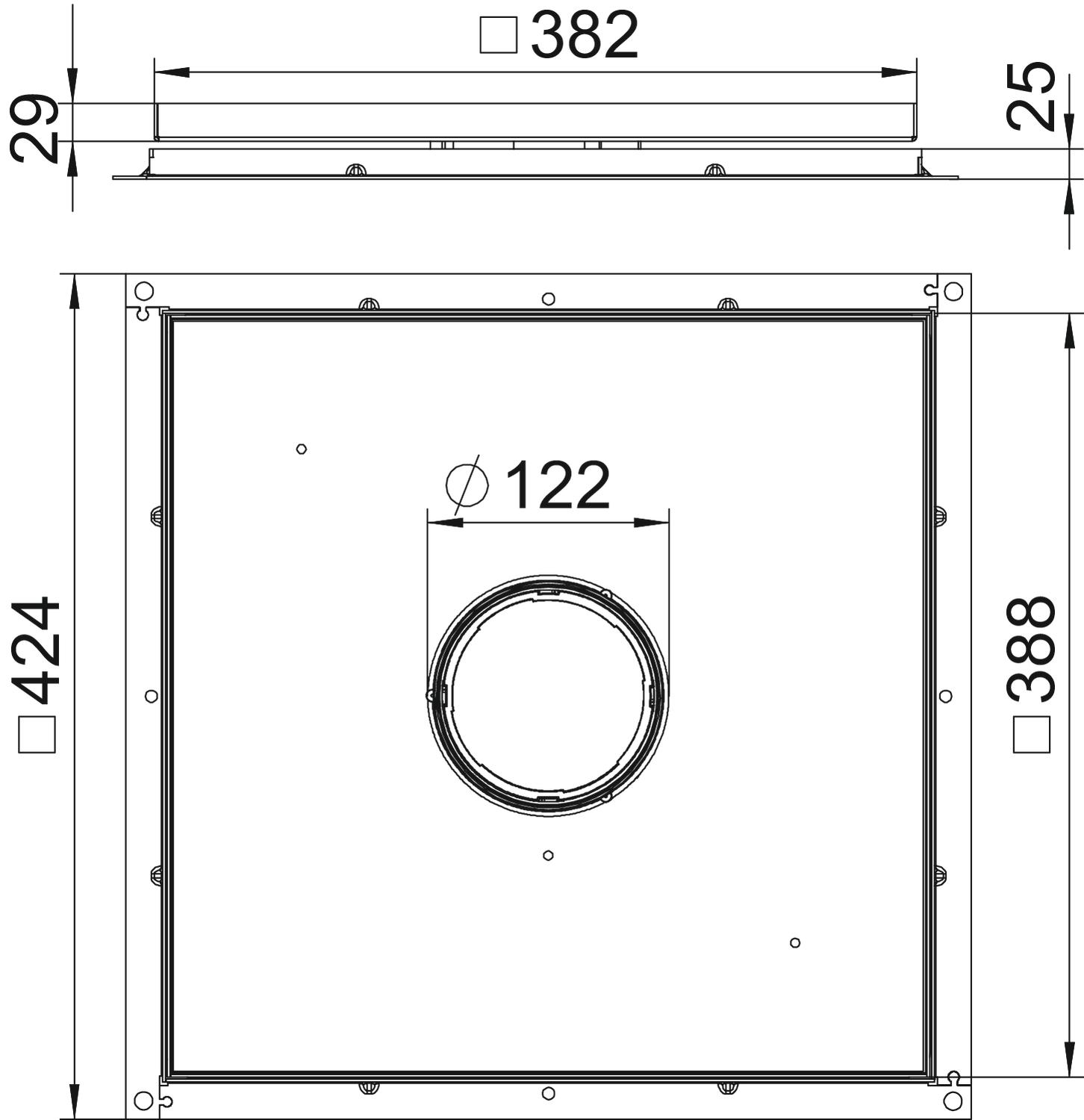 Cote A 424 mm Cote B 388 mm Cote c 382 mm Dimension h 25 mm Dimension 383x383x25 Empreinte CO2 (GWP) du berceau à la porte 37,0662 kg CO2e / 1 Pièce Entretien du sol humide Épaisseur du revêtement de sol 23 mm Matériau acier inoxydable 1.4301 Modèle Sortie de câble Tube escamotable Nombre des sorties de câble 1 Support d'appareillage pour le logement de paniers appareillage non - Tous les types