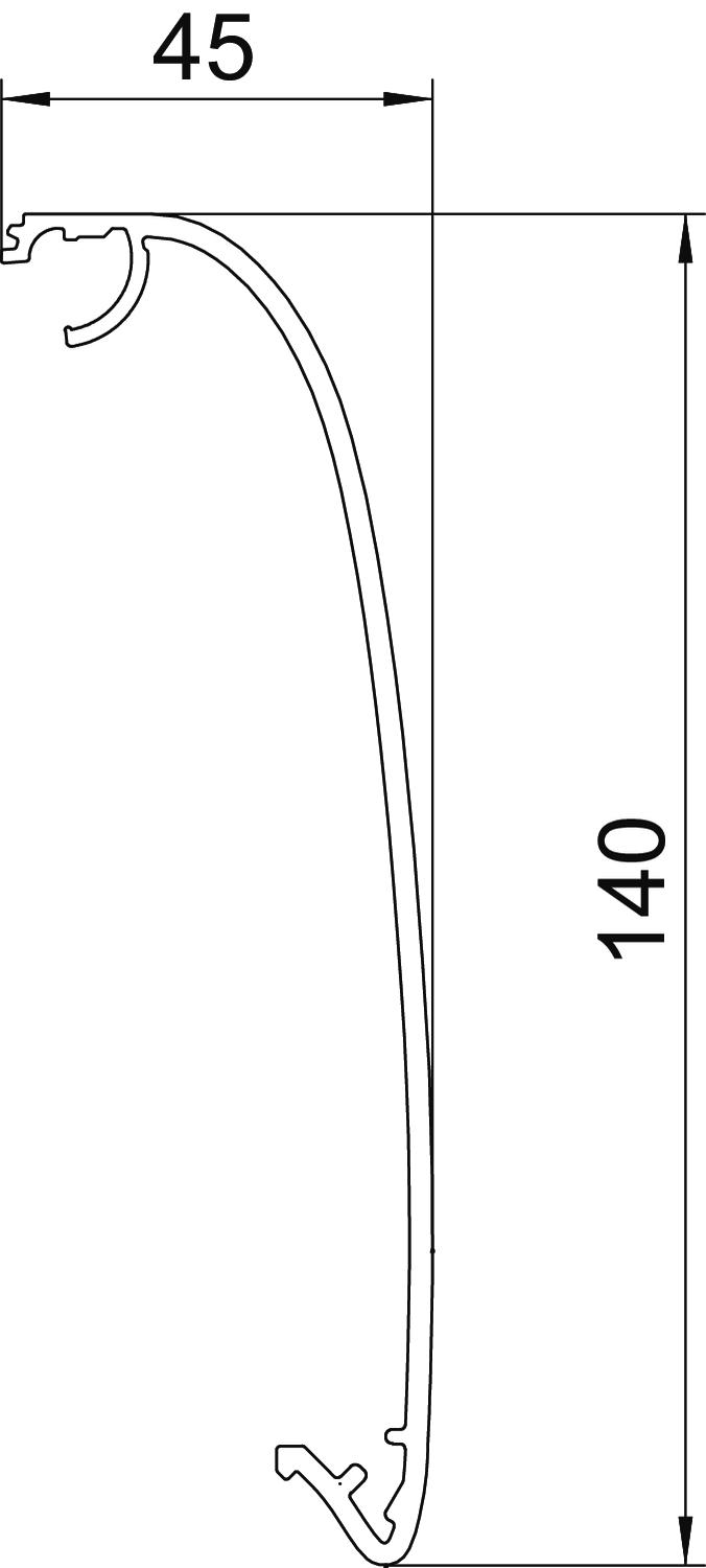 Coloris aluminium Dimension 45x140x999 Empreinte CO2 (GWP) du berceau à la porte 16,6574 kg CO2e / 1 Pièce Feuillard de protection oui Hauteur 45 mm Largeur 140 mm Longueur 999 mm Matériau aluminium Modèle lisse Sans halogène oui Surface anodisé Traitement antibactérien non Type de montage des couvercles chevauchant - Tous les types