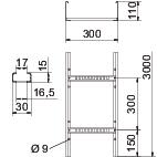 Description du produitÉchelle à câbles avec longeron latéral perforé d'une hauteur latérale de 110 mm, avec échelons rivetés à profilé en C ouvert vers le haut.