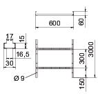 Description du produitÉchelle à câbles avec longeron perforé d'une hauteur de 60 mm, avec échelons VS rivetés (profilé en C) ouverts vers le haut.