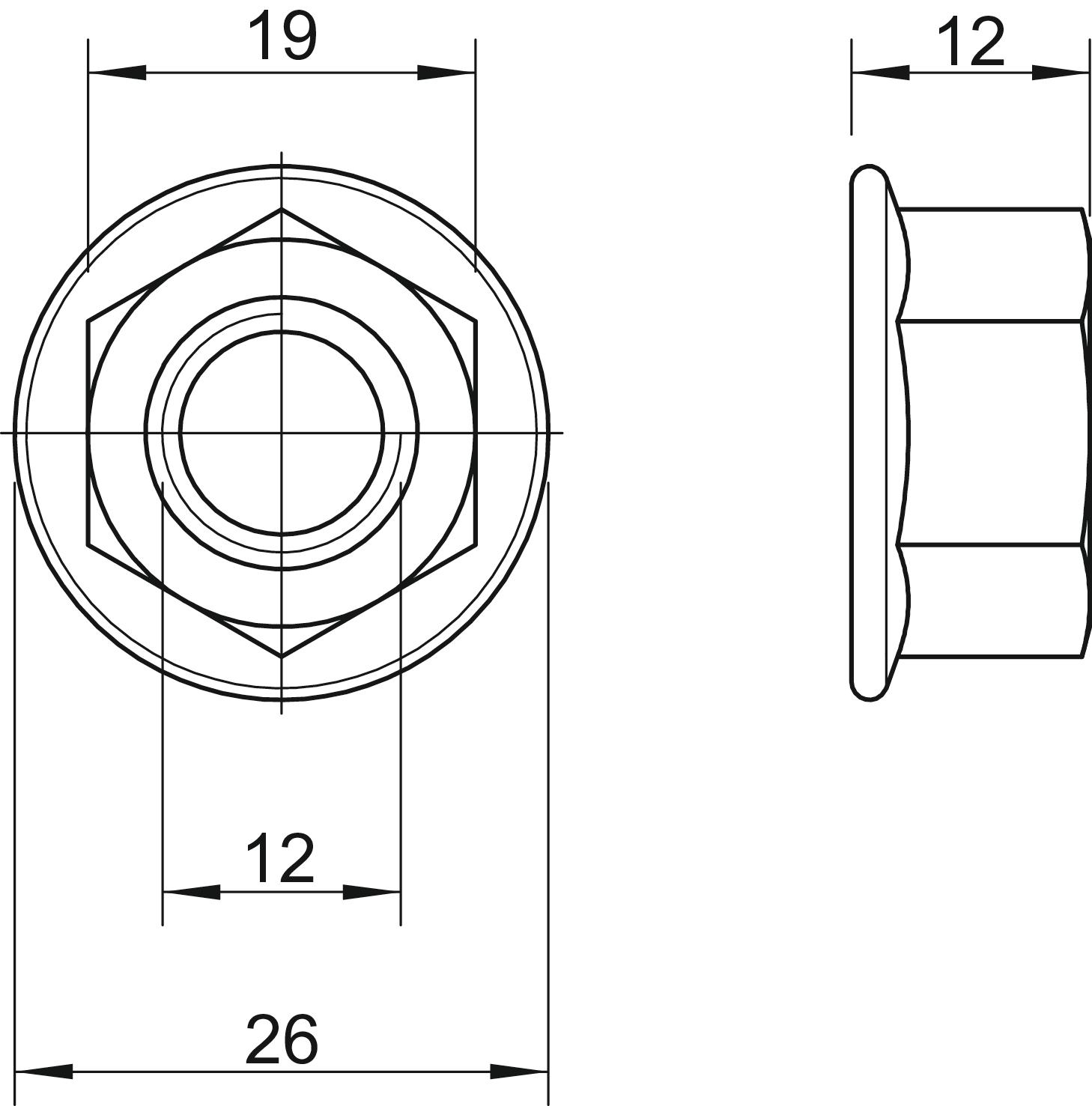 Autobloquant non Avec bride oui Cote d 26 mm Dimension h 12 mm Dimension M12 Empreinte CO2 (GWP) du berceau à la porte 0,1013 kg CO2e / 1 Pièce Filet impérial 1/2 pouce Filetage M12 Filetage gauche non Filetage, métrique 12 Matériau Acier inoxydable Méplat 18 Modèle de l’écrou Écrou Sans halogène oui Surface nu, traité Système à visser écrou Six pans extérieur Type de filetage métrique - Tous les types