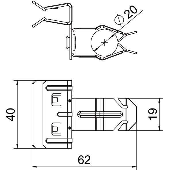 À charnière non Charge de rupture 0,11 kN Charnière ajustable non Coloris zinc Cote L 62 mm Diamètre de câbles/tubes max. 22 mm Diamètre de câbles/tubes min. 18 mm Dimension 4-10mm Dimension W 40 mm Épaisseur de bride F max. 10 mm Épaisseur de bride F min. 4 mm Hauteur 35 mm Largeur 40 mm Longueur 62 mm Matériau acier Surface Lamelle de zinc Type de fixation Bornes Type/élément de raccordement Tube/câble - Tous les types