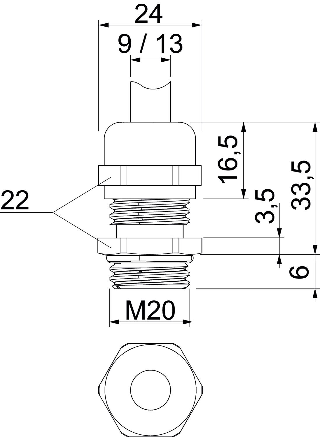 Avec contre-écrou non Bague d'étanchéité à usage multiple non Capacité d’étanchéité D max. 13 mm Capacité d’étanchéité D min. 9 mm Cote L1 6 mm Cote L2 3,5 mm Cote L3 16,5 mm Couple de serrage instable 3,5 Nm Dimension M20 Dimension E 24 mm Dimension L max. 33,5 mm Empreinte CO2 (GWP) du berceau à la porte 0,0889 kg CO2e / 1 Pièce Filetage M20 x 1,5 Indice de protection IP68 Longueur du filetage 6 mm Matériau laiton Méplat 22 Modèle droit Plage de températures d’utilisation max. 100 °C Plage de températures d’utilisation min. -20 °C Possibilité de décharge de traction oui Pour zone explosive sans Presse-étoupe pour câbles plats non Protection antiflexion non renforcé de fibres de verre non Résistant aux chocs non Sans halogène non Surface Nickelé Type d'étanchéité Bague d'étanchéité Type de filetage métrique - Tous les types