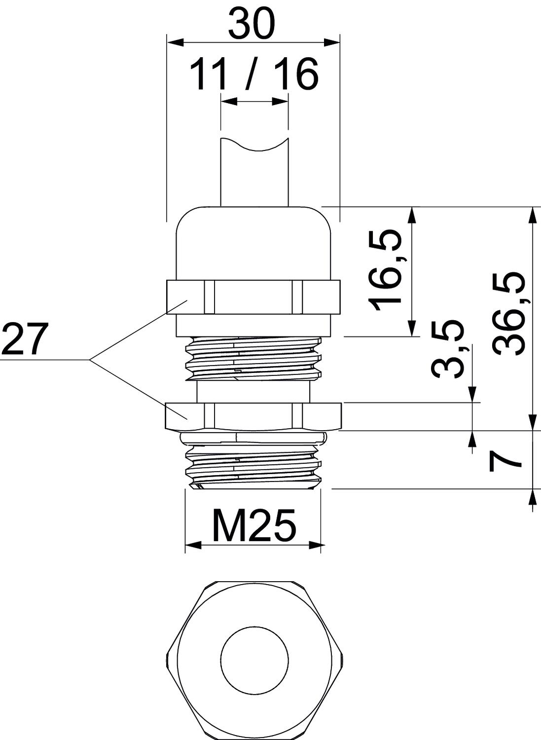 Avec contre-écrou non Bague d'étanchéité à usage multiple non Capacité d’étanchéité D max. 16 mm Capacité d’étanchéité D min. 11 mm Cote L1 7 mm Cote L2 3,5 mm Cote L3 16,5 mm Couple de serrage instable 6,7 Nm Dimension M25 Dimension E 30 mm Dimension L max. 36,5 mm Empreinte CO2 (GWP) du berceau à la porte 0,1329 kg CO2e / 1 Pièce Filetage M25 x 1,5 Indice de protection IP68 Longueur du filetage 7 mm Matériau laiton Méplat 27 Modèle droit Plage de températures d’utilisation max. 100 °C Plage de températures d’utilisation min. -20 °C Possibilité de décharge de traction oui Pour zone explosive sans Presse-étoupe pour câbles plats non Protection antiflexion non renforcé de fibres de verre non Résistant aux chocs non Sans halogène non Surface Nickelé Type d'étanchéité Bague d'étanchéité Type de filetage métrique - Tous les types