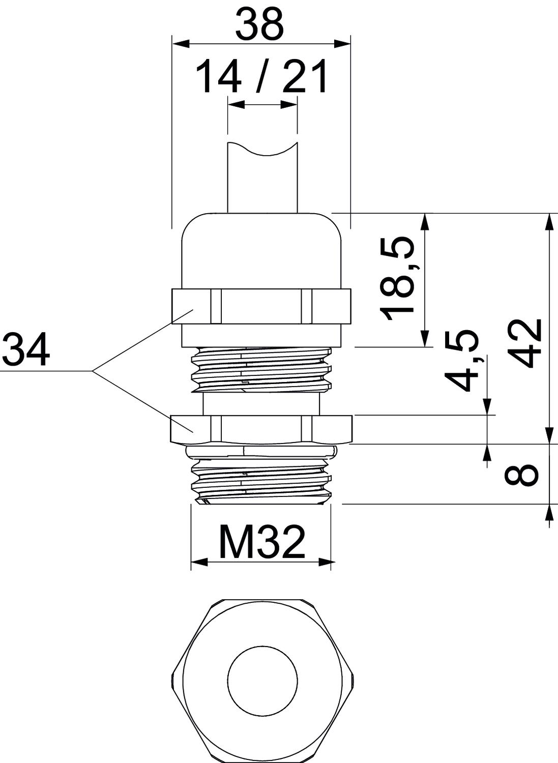 Avec contre-écrou non Bague d'étanchéité à usage multiple non Capacité d’étanchéité D max. 21 mm Capacité d’étanchéité D min. 14 mm Cote L1 8 mm Cote L2 4,5 mm Cote L3 18,5 mm Couple de serrage instable 12 Nm Dimension M32 Dimension E 38 mm Dimension L max. 42 mm Empreinte CO2 (GWP) du berceau à la porte 0,1919 kg CO2e / 1 Pièce Filetage M32 x 1,5 Indice de protection IP68 Longueur du filetage 8 mm Matériau laiton Méplat 34 Modèle droit Plage de températures d’utilisation max. 100 °C Plage de températures d’utilisation min. -20 °C Possibilité de décharge de traction oui Pour zone explosive sans Presse-étoupe pour câbles plats non Protection antiflexion non renforcé de fibres de verre non Résistant aux chocs non Sans halogène non Surface Nickelé Type d'étanchéité Bague d'étanchéité Type de filetage métrique - Tous les types