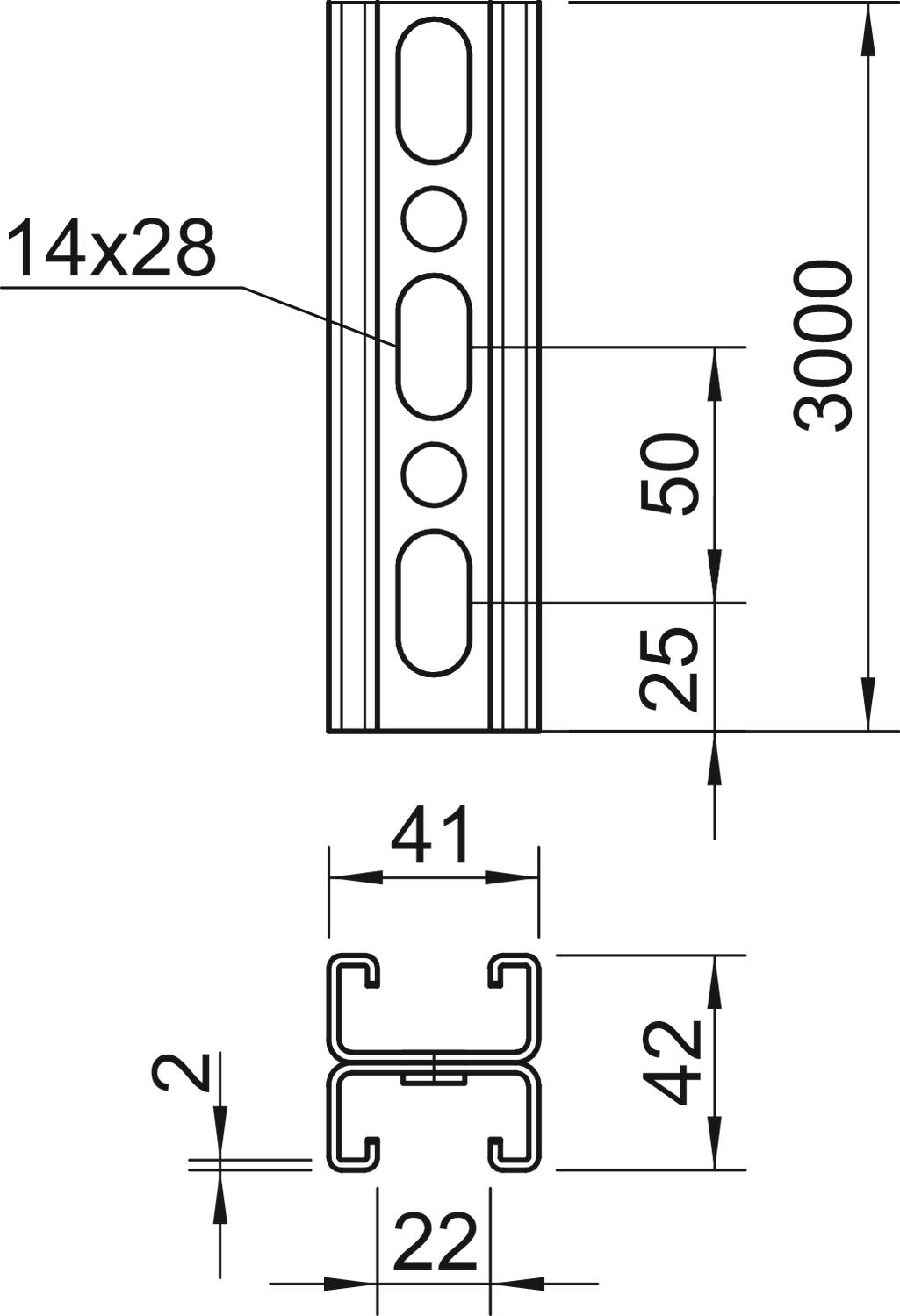 Description du produitRail de montage profilé avec perfonration continue au fond modèle lourd et ouverture 22 mm. En version double, c.-à-d. que deux rails profilés sont reliés au niveau du fond (rivetés).