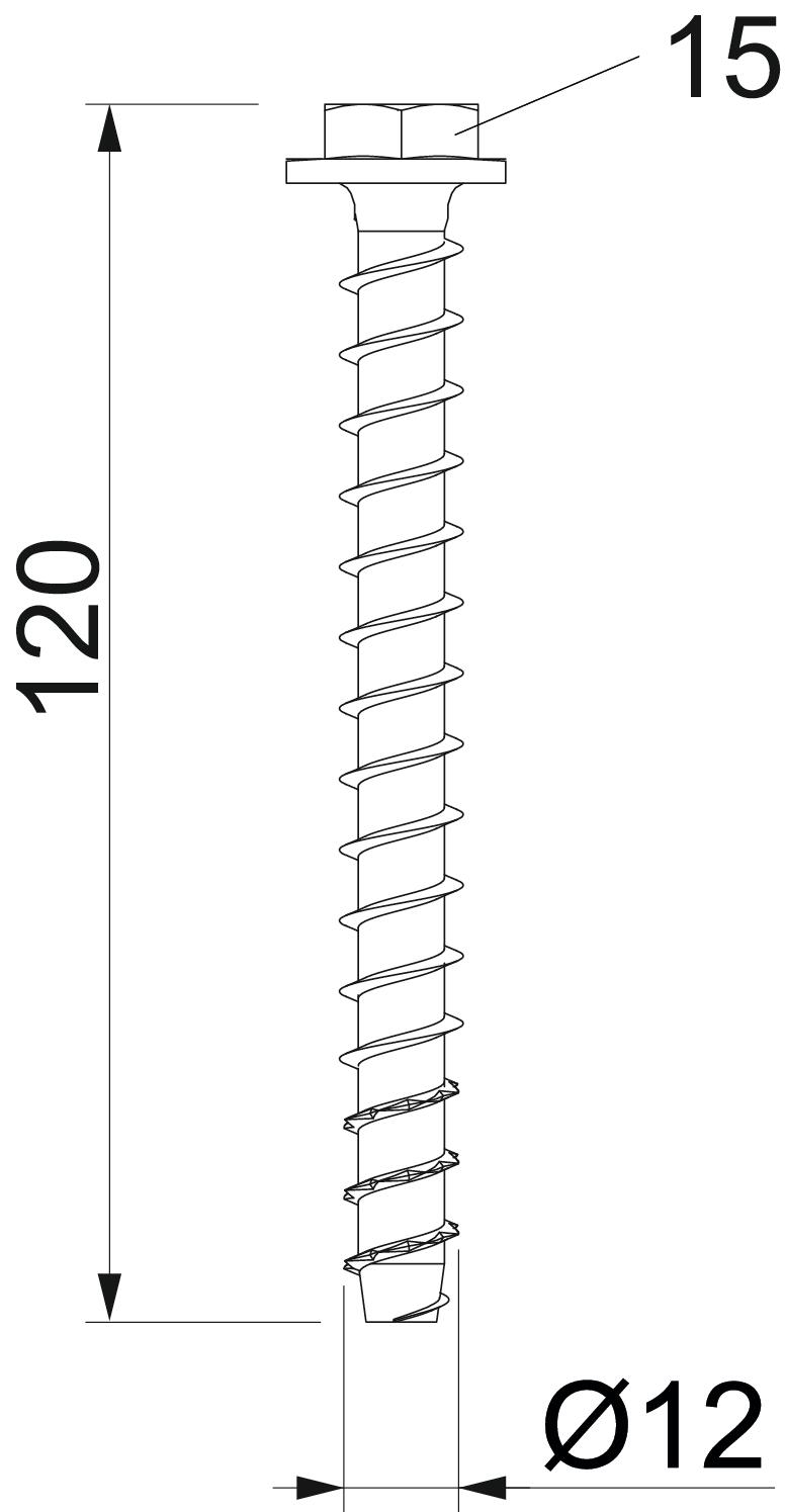 Apertura di chiave 15 Colore zinco Diametro della foratura min. 10 mm Diametro filettatura ST 12 Diametro testa 22 mm Dimensione L 120 mm Dimensionee 12x120 Dimensioni 12x120 Filettatura 12 Fire resistance class EN 13501-1 R30, R60, R90, R120 Forma della testa esagonale Indurito sì Lughezza. 120 mm Lunghezza tassello 120 mm Materiale Acciaio Profondità foratura 85 mm Sistema a vite esagonale Spessore morsetto 45 mm Superficie zincato Valutazione del sisma ETA C1 Versione tasselli/chiodi/viti Tasselli a spirale - Tutti i tipi