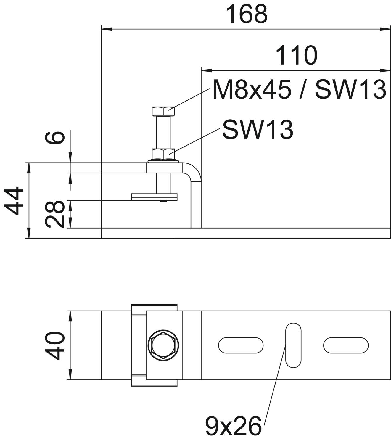 Descrizione del prodottoBeam clamp for mounting light components on horizontal steel beams. Suitable, for example, for mesh cable trays and cable trays to 300 mm width or clips. The direction of the cable support system attached to the beam clamp is horizontal.