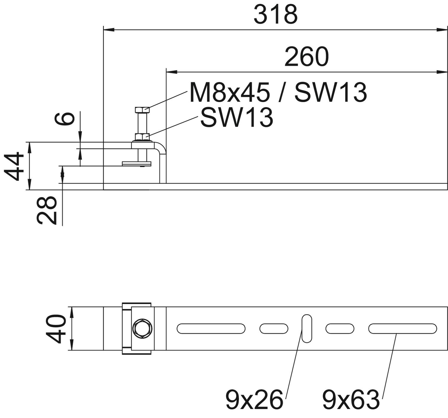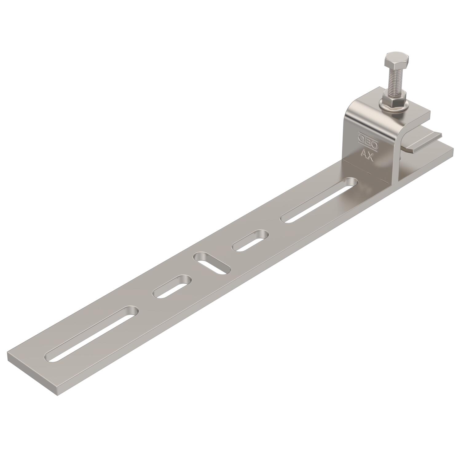 Descrizione del prodottoBeam clamp for mounting light components on horizontal steel beams. Suitable, for example, for mesh cable trays and cable trays to 300 mm width or clips. The direction of the cable support system attached to the beam clamp is horizontal.