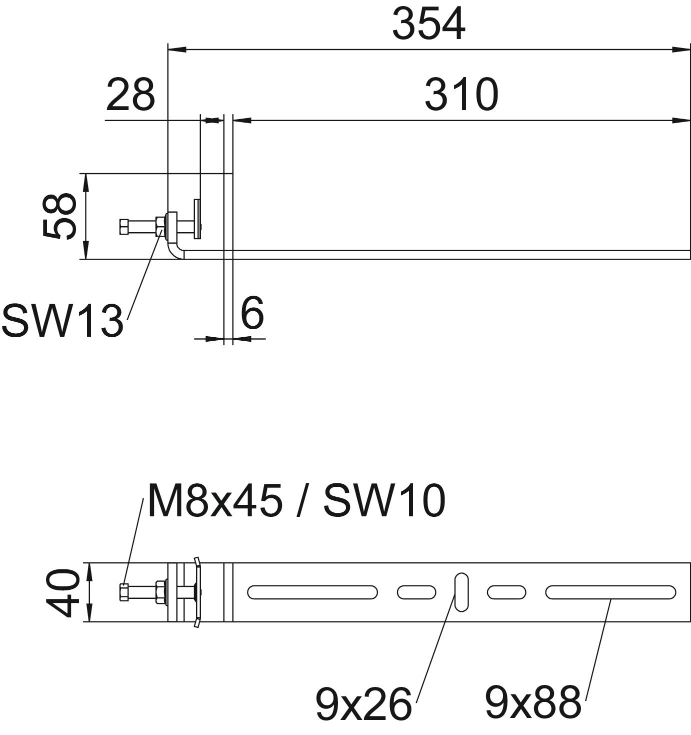Acciaio inossidabile, decapato no Altezza 58 mm Colore zinco Dimensionee 354x58x40 Larghezza 310 mm Lughezza. 348 mm Materiale Acciaio Range di temperatura di esercizio max 120 °C Range di temperatura di esercizio min. -20 °C Spessore materiale 6 mm Superficie zincato a caldo per immersione - Tutti i tipi