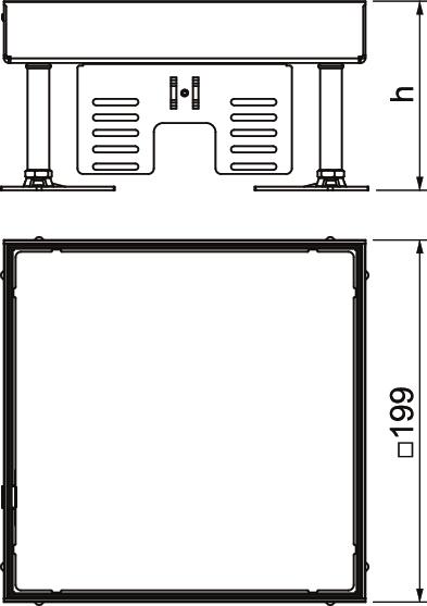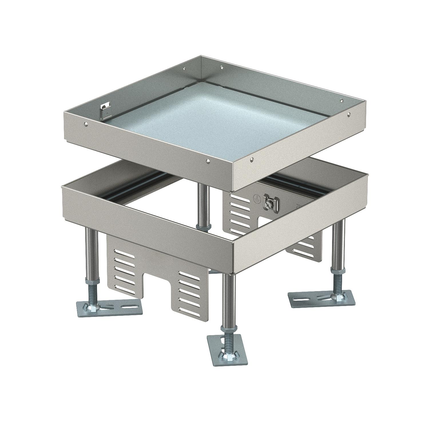 Descrizione del prodottoCassetta livellabile "cieca" quadrata di dimensione nominale 4, per creare un'apertura d'ispezione; da installare nel sistema di condotti in pavimenti sopraelevati e con intercapedini, in pavimenti trattati a secco o umido in ambienti interni. Adatto solo per pavimenti lisci. Livello di protezione: IP X5.