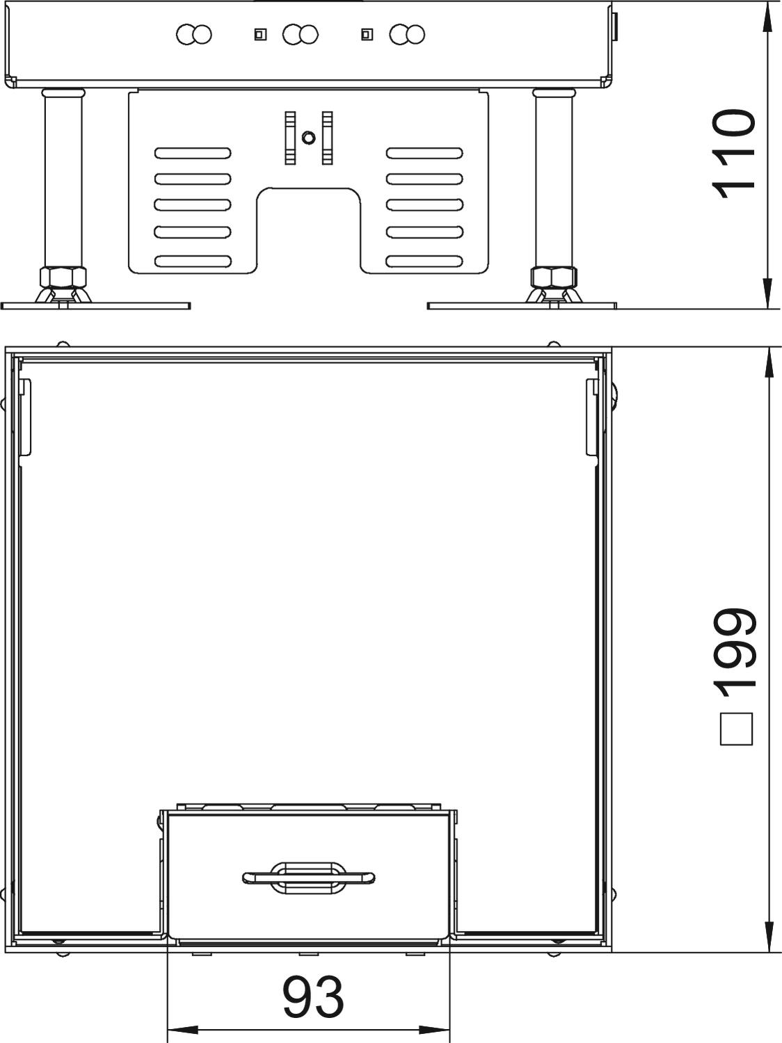 Cassetta livellabile con uscita cavo a 2 vie. È possibile installare 2 piastre di copertura APMT2. Per il montaggio di 2 supporti universali UT3 per 4 apparecchi di installazione singoli con anello/staffa di supporto o 6 apparecchi Modul 45.