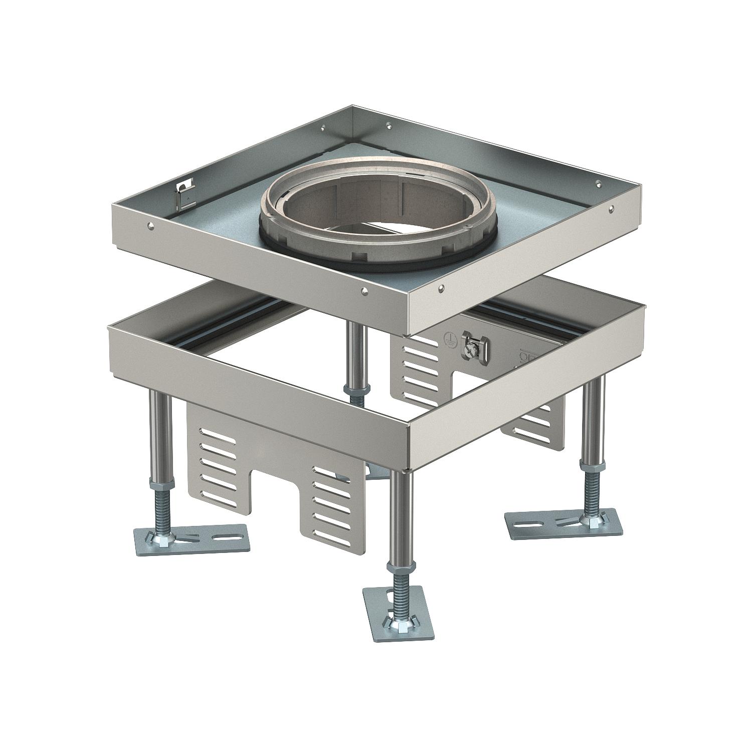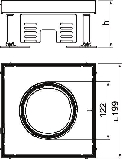 Descrizione del prodottoCassetta livellabile quadrata per Tubus di dimensione nominale 4, per il montaggio di apparecchi d'installazione nel sistema di condotti in pavimenti sopraelevati e con intercapedini, in pavimenti lavati a secco o con lavaggio bagnato. Livello di protezione: IP X5.