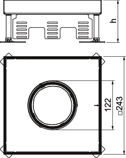 Descrizione del prodottoCassetta livellabile quadrata per Tubus di dimensione nominale 9, per il montaggio di apparecchi d'installazione nel sistema di condotti in pavimenti sopraelevati e con intercapedini, in pavimenti lavati a secco o con lavaggio bagnato. Adatto solo per pavimenti lisci.