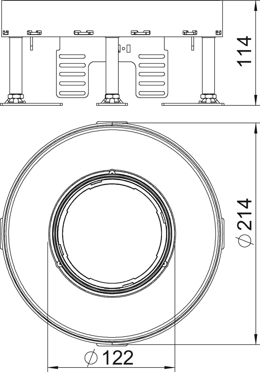 Descrizione del prodottoCassetta tonda per carichi pesanti per Tubus di dimensione nominale R4 per l'installazione di accessori in sistemi di canalizzazione, pavimenti sopraelevati e intercapedini, in pavimenti puliti a secco o a umido in ambienti interni. Classe di carico 2 fino a 20 kN.