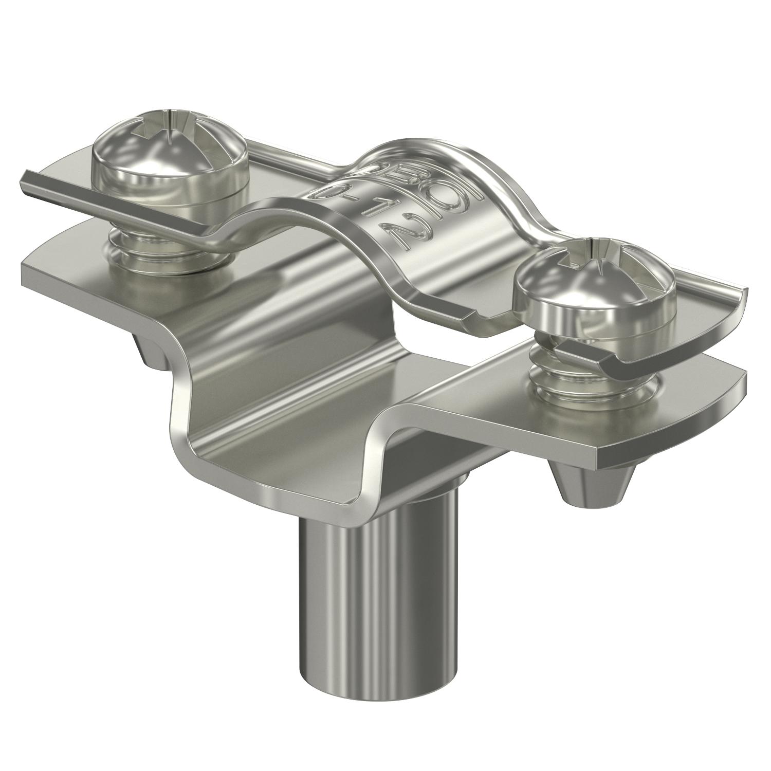 Descrizione del prodottoCollare di fissaggio per il montaggio di tubi e cavi a parete, soffitto e pavimento. Con elemento superiore autobloccante. Fissaggio sopra supporto con filettatura interna.