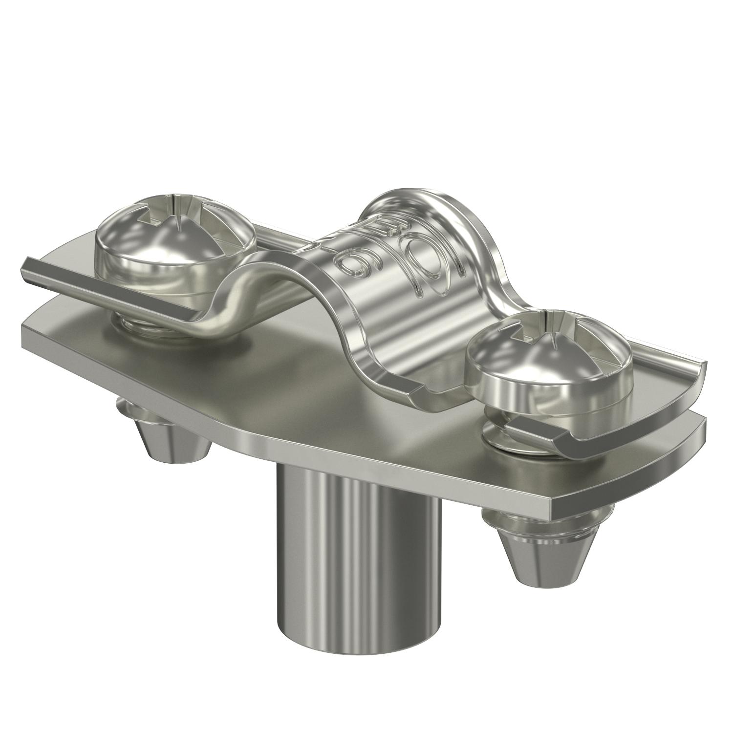Descrizione del prodottoCollare di fissaggio per il montaggio di tubi e cavi a parete, soffitto e pavimento. Con elemento superiore autobloccante. Fissaggio sopra supporto con filettatura interna.