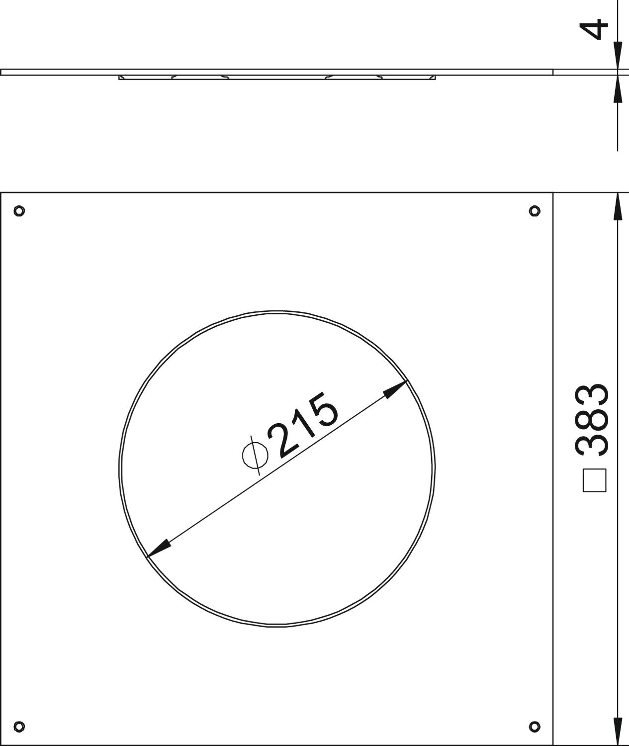 Adatto per canali sotto pavimento chiusi a filo battuto no Adatto per condotti sotto battuto coperti dal massetto sì Apertura di montaggio tondo Apertura di montaggio per tank sopra pavimento no Coperchio per apertura montaggio no Dimensione A 383 mm Dimensione d Ø 215 mm Dimensione nominale per torretta R4 Dimensionee 383x383x4 Impronta CO2 (GWP) dalla culla al cancello 11,1863 kg CO2e / 1 Pezzo Larghezza 383 mm Larghezza canale max 350 mm Larghezza canale min. 190 mm Lughezza. 383 mm Materiale Acciaio Nenngröße 350 mm Possibilità di incasso della guarnizione no Spessore materiale 4 mm Superficie zincato in continuo Trattamento del pavimento asciutto Versione per carichi pesanti no - Tutti i tipi