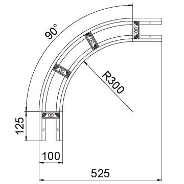 Descrizione del prodottoCurva 90° orizzontale, con piolo saldato per tutti i tipi di passerelle con altezza del bordo pari a 60 mm.