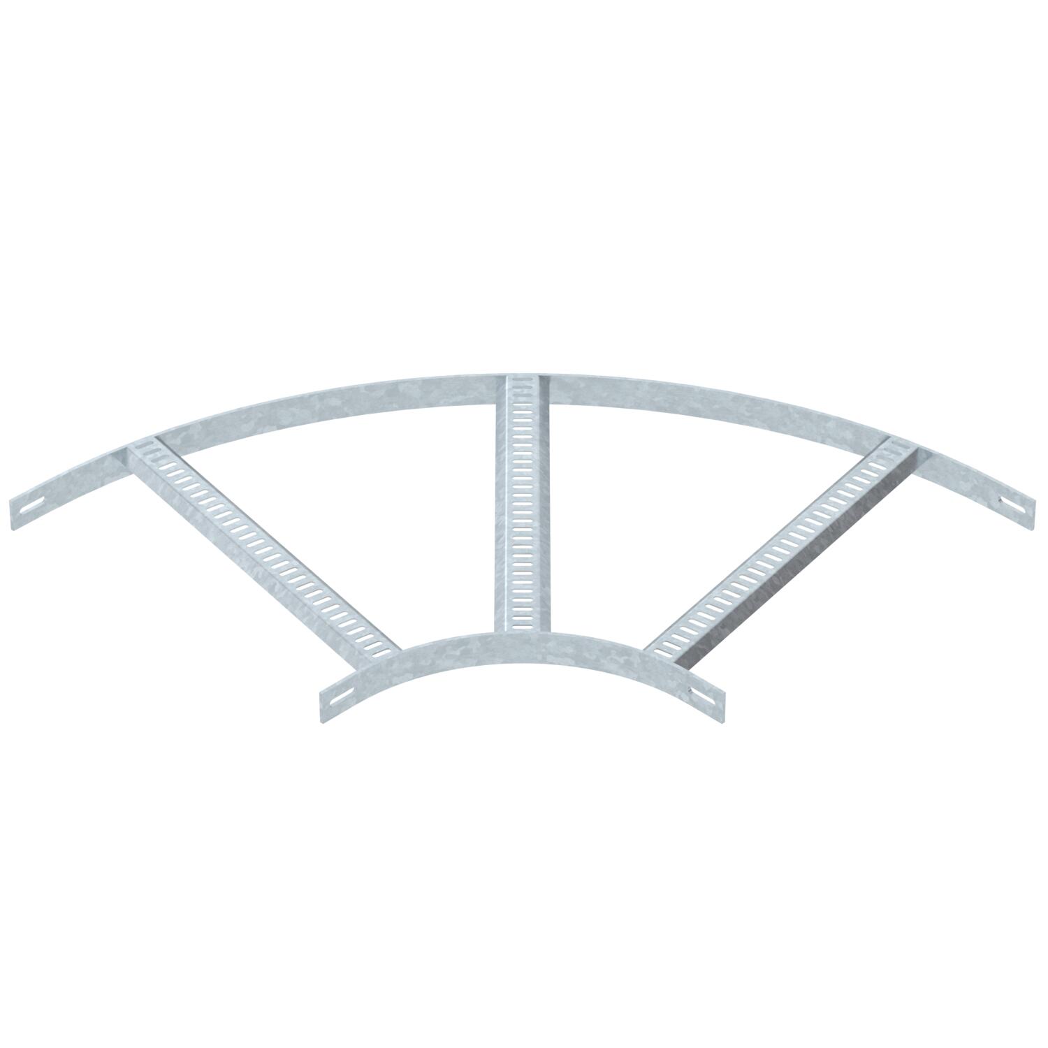Descrizione del prodottoCurva di 90° per passerelle per impianti navali di tipo SL 62 con altezza laterale di 40 mm, con pioli trapezoidali saldati, forati e aperti verso il basso.