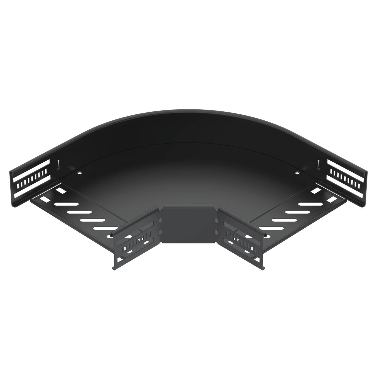 Descrizione del prodottoCurva 90°, orizzontale, accessorio per tutti i tipi di passerelle portacavi con altezza del bordo di 60 mm. Rivestimento nero.