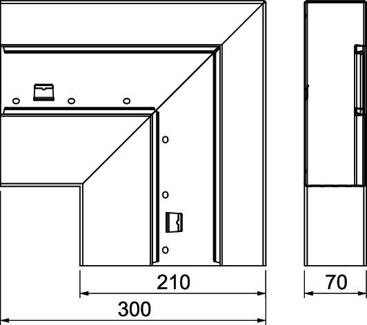 Altezza 70 mm Area ad angolo min. 90 mm Colore bianco; RAL 9010 Deviazione di direzione verticale in discesa Dimensionee 70x210x300 Foro di montaggio nel pavimento sì Giunto canale no Grado di protezione IP30 Grado di protezione IK-Code IK10 Graffa ferma cavo no Impronta CO2 (GWP) dalla culla al cancello 8,2015 kg CO2e / 1 Pezzo Larghezza 210 mm Larghezza della parte superiore 76,5 mm Lughezza. 300 mm Materiale Acciaio Numero delle parti superiori 1 Pellicola protettiva sì per altezza canale 70 mm per larghezza canale 210 mm Priva di alogeni sì Range di temperatura di esercizio max 60 °C Range di temperatura di esercizio min. -25 °C Simmetrico no Tipo di montaggio delle parti superiori collocato internamente Trattamento antibatterico no Versione Parte inferiore - Tutti i tipi