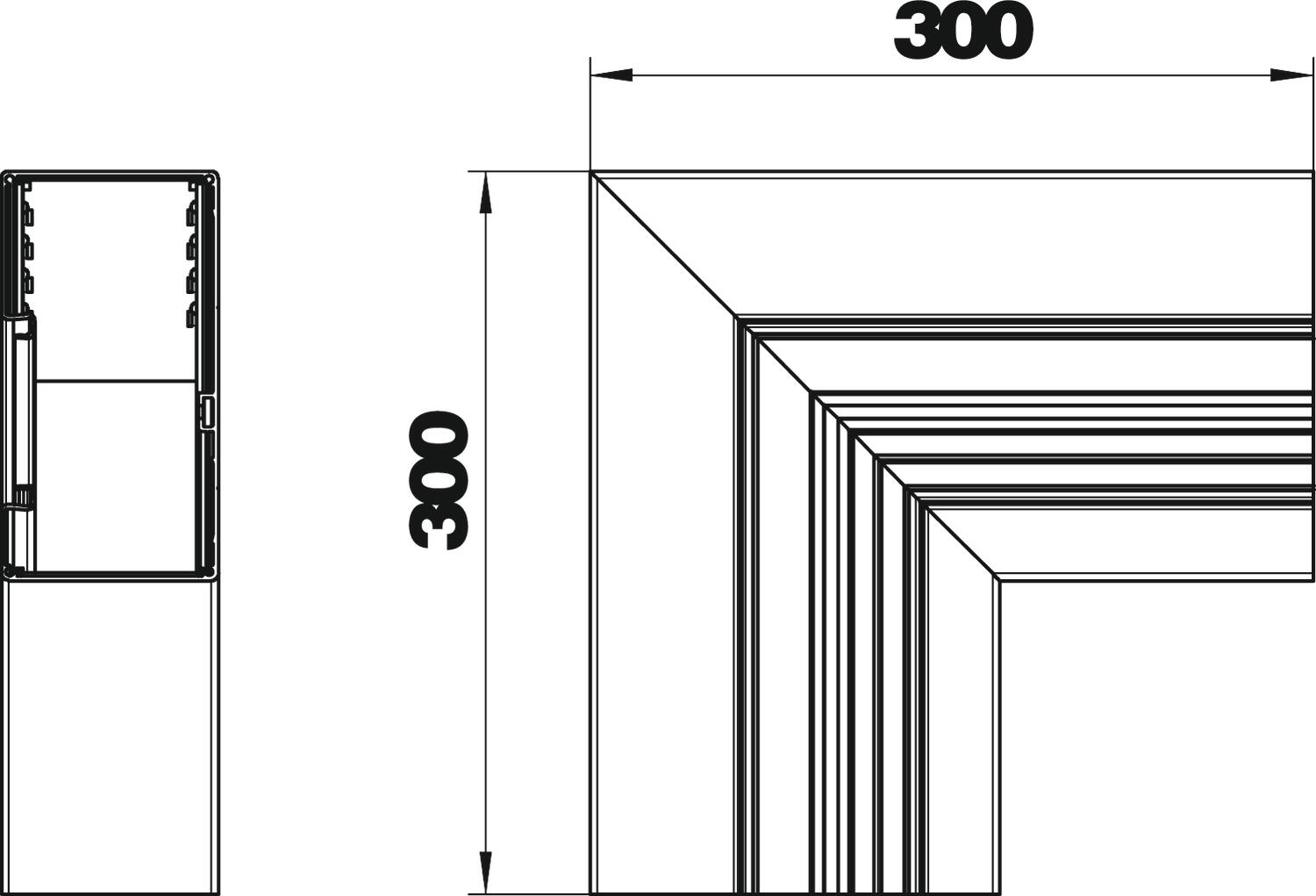 Altezza 90 mm Area ad angolo min. 90 mm Colore bianco; RAL 9010 Deviazione di direzione verticale in salita Dimensionee 90x170x300 Foro di montaggio nel pavimento no Giunto canale no Grado di protezione IP30 Grado di protezione IK-Code IK10 Graffa ferma cavo no Impronta CO2 (GWP) dalla culla al cancello 24,1754 kg CO2e / 1 Pezzo Larghezza 170 mm Larghezza della parte superiore 76,5 mm Lughezza. 300 mm Materiale Alluminio Numero delle parti superiori 1 Pellicola protettiva sì per altezza canale 90 mm per larghezza canale 170 mm Priva di alogeni sì Range di temperatura di esercizio max 60 °C Range di temperatura di esercizio min. -25 °C Simmetrico no Tipo di montaggio delle parti superiori collocato internamente Trattamento antibatterico no Versione Parte inferiore - Tutti i tipi